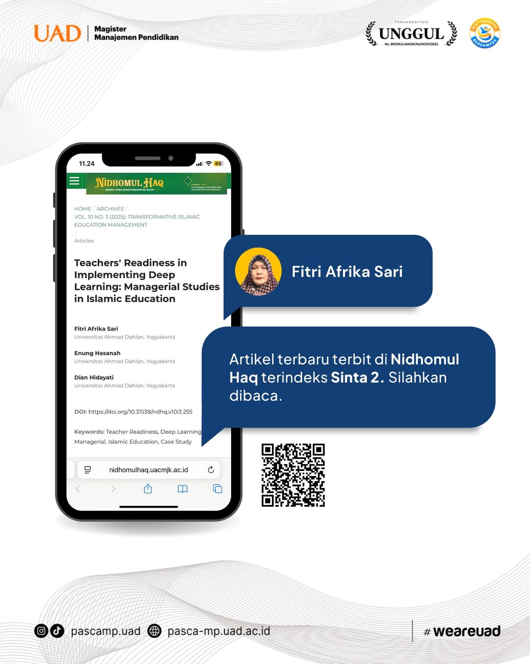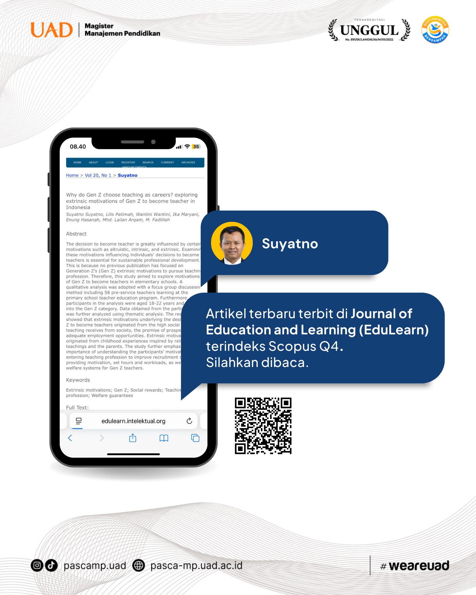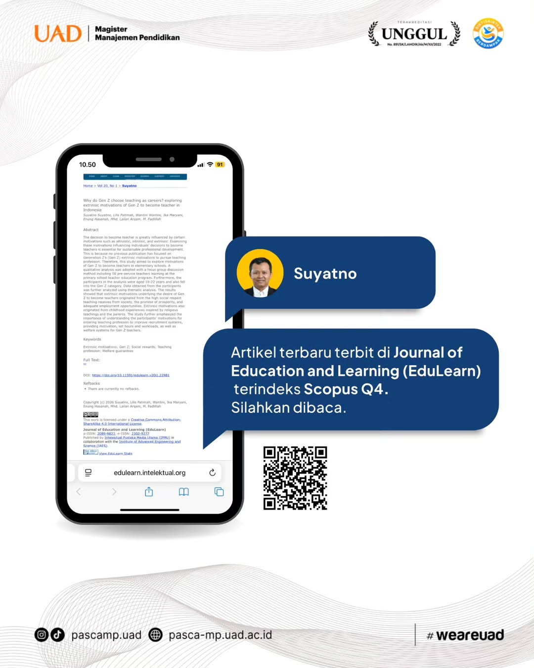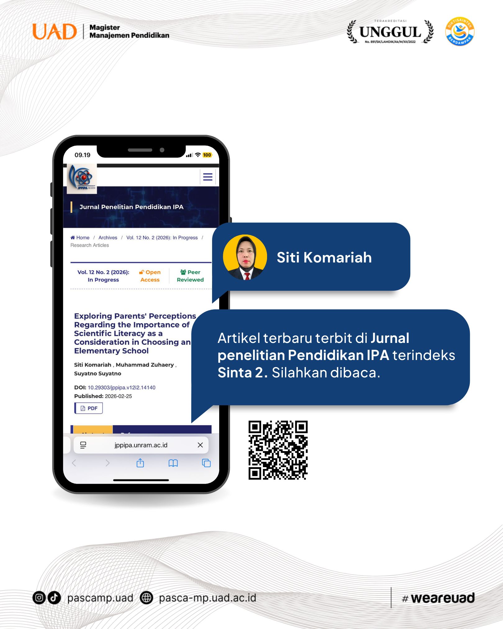 Magister (S2) Manajemen Pendidikan FKIP UAD berdasarkan SK No. 891/SK/LAMDIK/Ak/M/XII/2022 telah terakreditasi UNGGUL dari Lembaga Akreditasi mandiri Pendidikan (Lamdik)