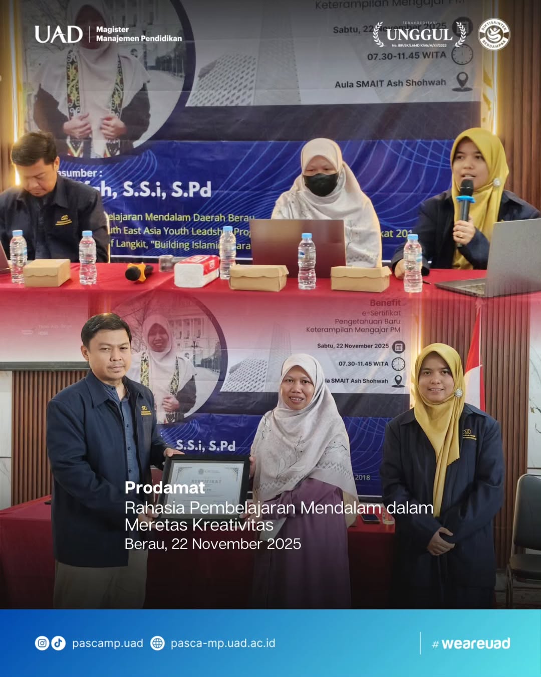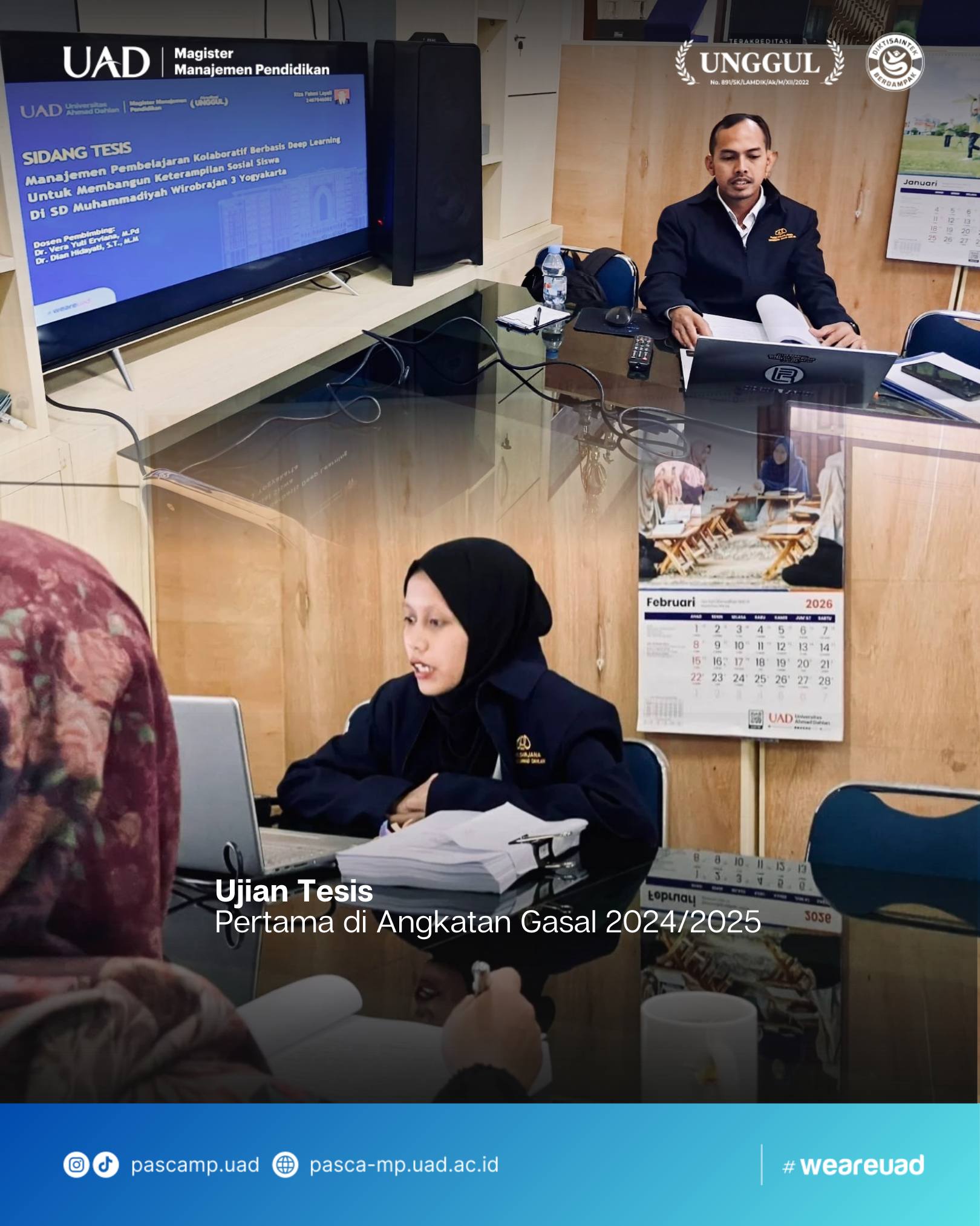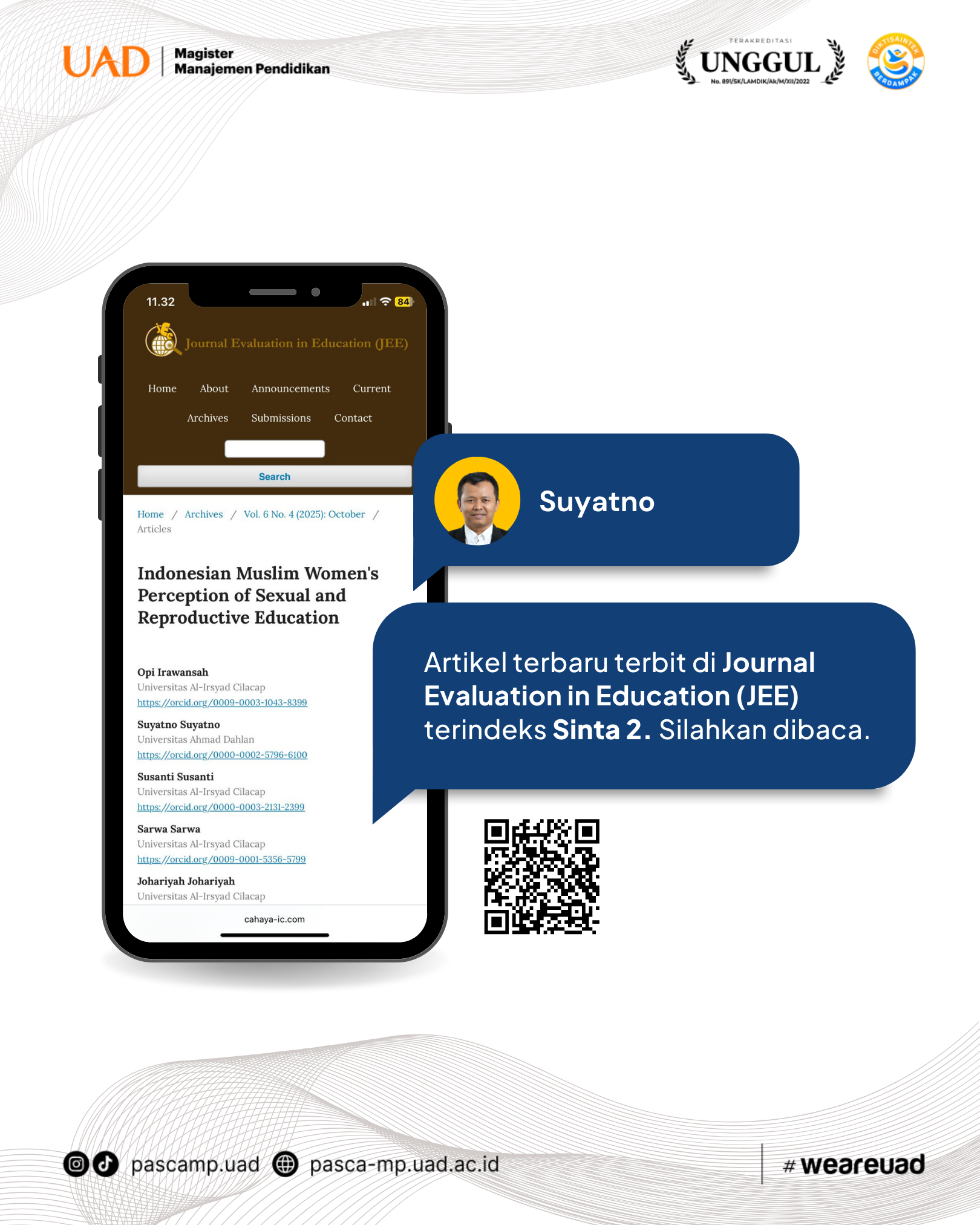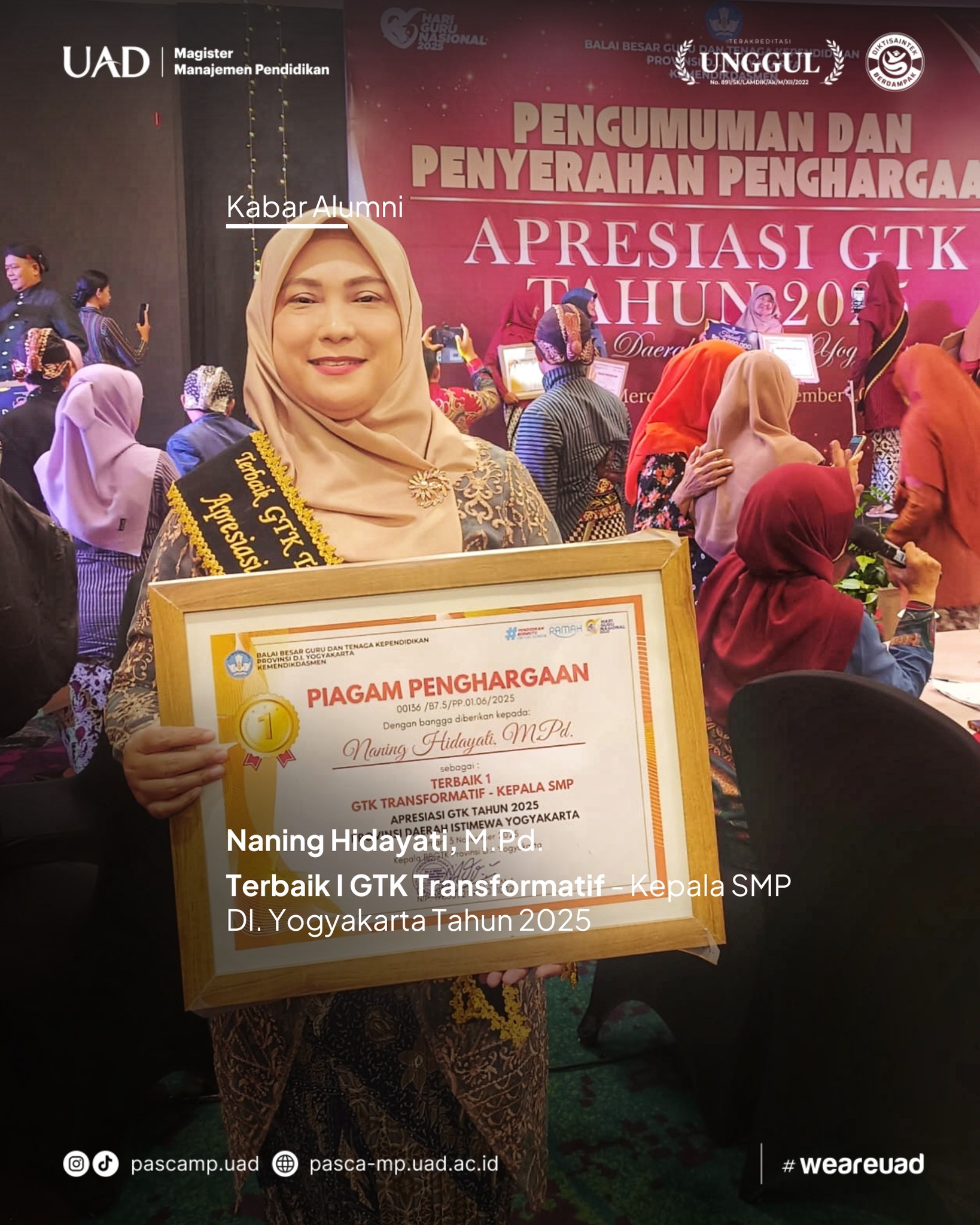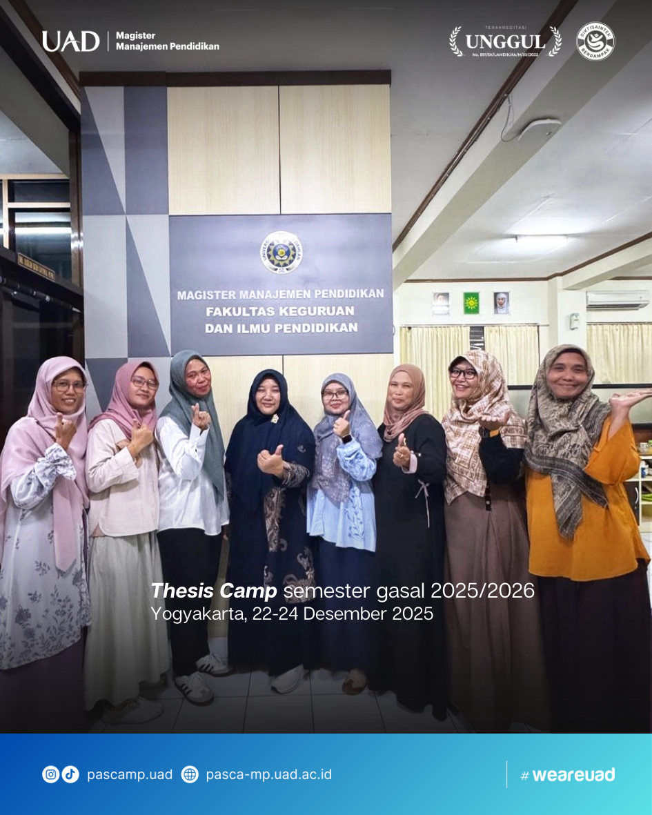 Magister (S2) Manajemen Pendidikan FKIP UAD berdasarkan SK No. 891/SK/LAMDIK/Ak/M/XII/2022 telah terakreditasi UNGGUL dari Lembaga Akreditasi mandiri Pendidikan (Lamdik)