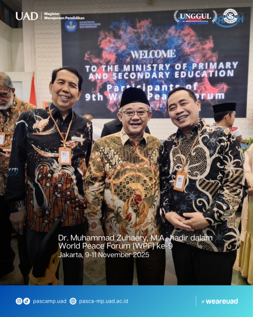 Partisipasi Dr. Muhammad Zuhaery dalam World Peace Forum ke-9 menjadi wujud nyata komitmen Magister Manajemen Pendidikan FKIP UAD dalam mendukung dialog lintas peradaban dan memperkuat kontribusi pendidikan sebagai fondasi bagi terciptanya perdamaian dunia yang berkelanjutan.