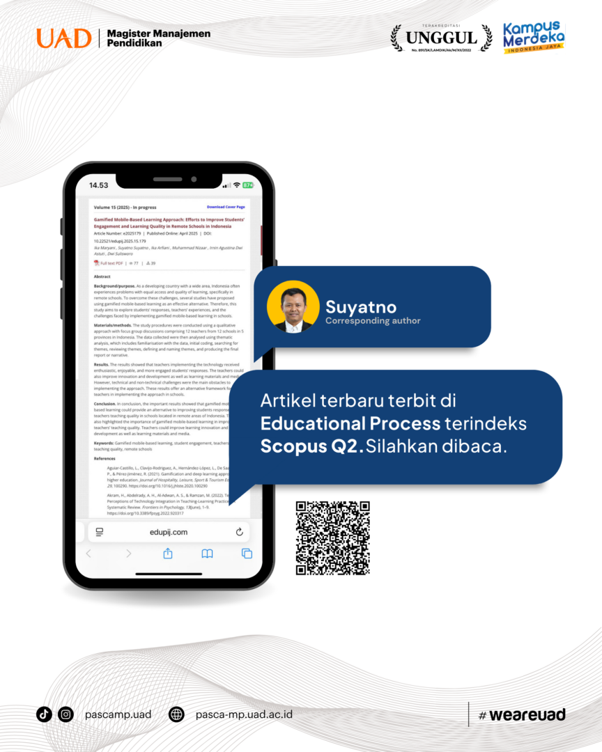 Artikel terbit di Educational Process: International Journal Volume 15 tahun 2025 terindeks Scopus Q2. Baca lengkap artikel melalui link https://www.edupij.com/files/1/articles/article_550/EDUPIJ_550_article_680c32bdb118a.pdf
