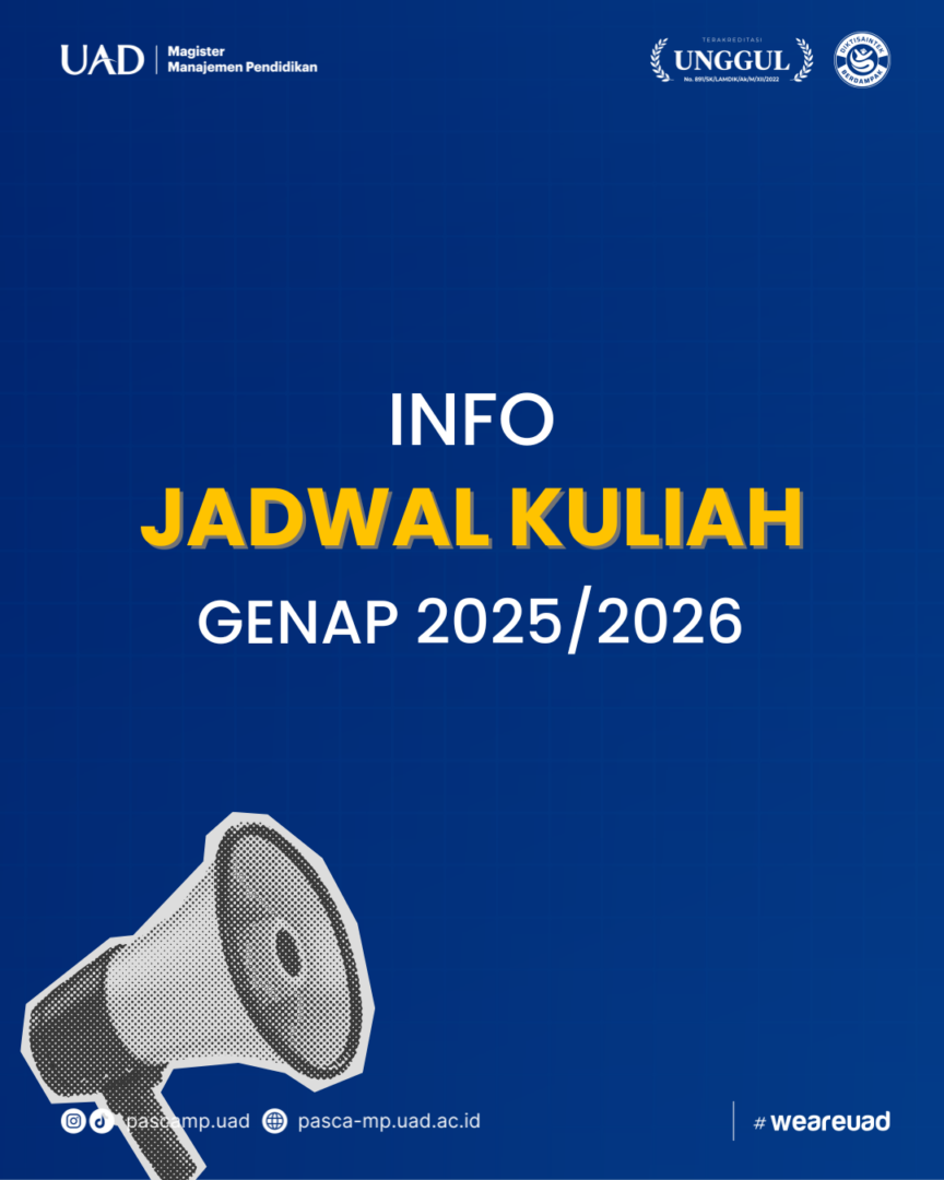 Diumumkan kepada dosen dan mahasiswa Magister Manajemen Pendidikan FKIP UAD bahwa jadwal kuliah semester Genap 2025/2026 unduh file dibawah.