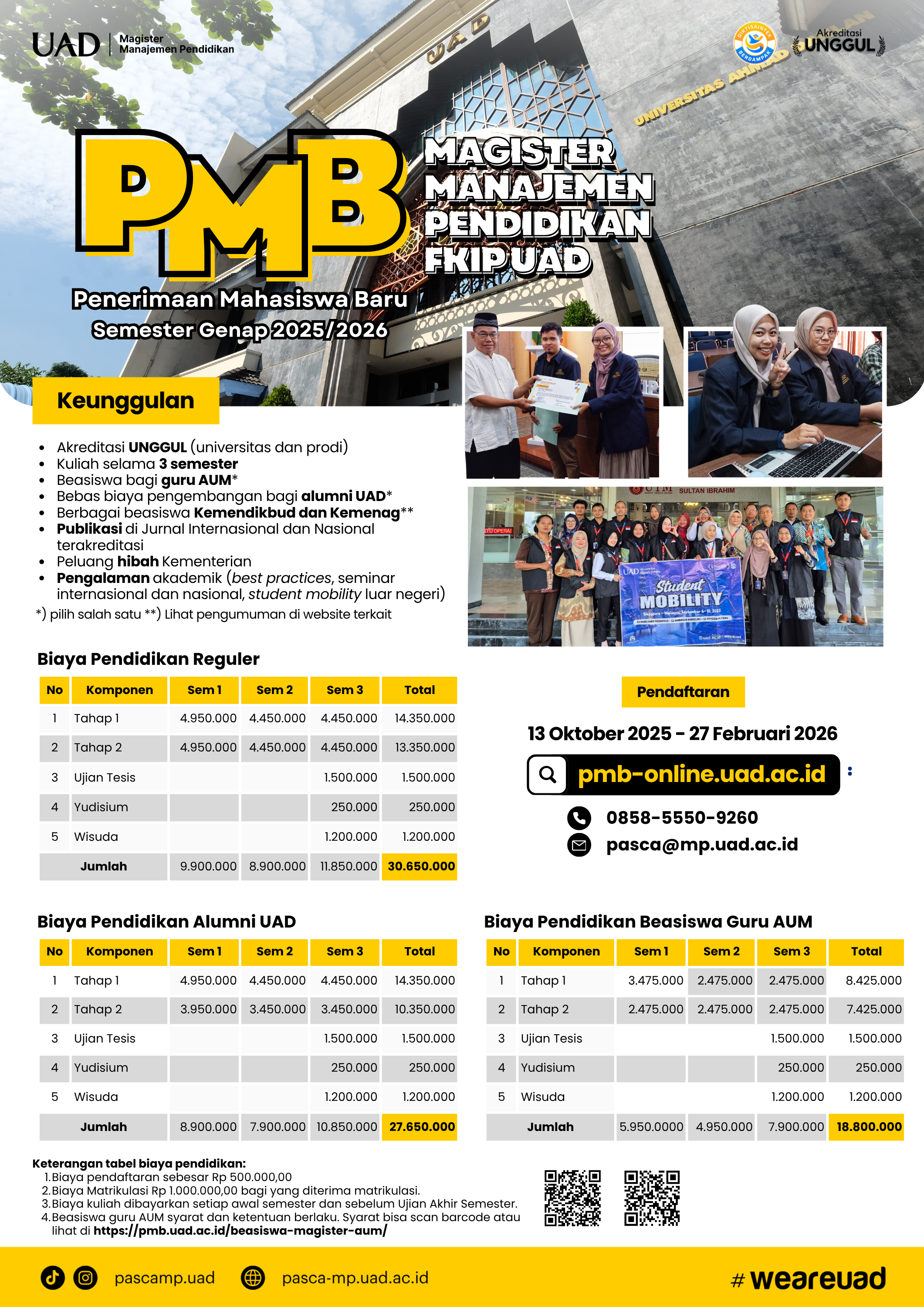 - Calon mahasiswa dari S-1 Kependidikan, S-1 non Kependidikan atau IPK < 2.75 mengikuti matrikulasi 4 SKS.