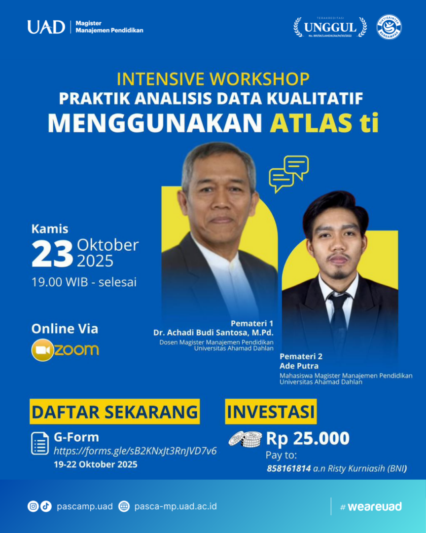 Jangan lewatkan kesempatan berharga untuk memperdalam keterampilan analisis data kualitatif menggunakan ATLAS.ti bersama narasumber berpengalaman!