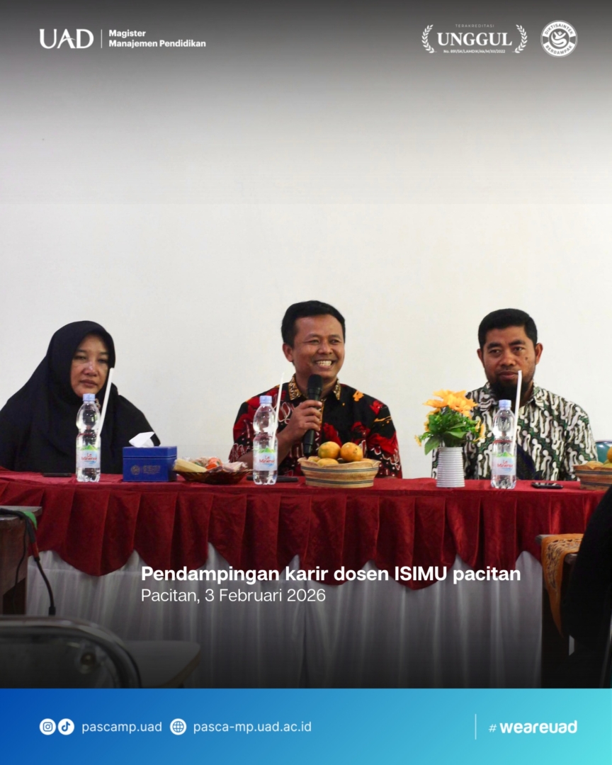 Program Studi Magister Manajemen Pendidikan melaksanakan kegiatan pendampingan karier dosen ISIMU Pacitan pada 3 Februari 2025 bertempat di ruang pertemuan ISIMU Pacitan. Kegiatan ini diikuti oleh para dosen, Rektor, serta Wakil Rektor ISIMU Pacitan sebagai bagian dari upaya penguatan kualitas sumber daya manusia di lingkungan perguruan tinggi.