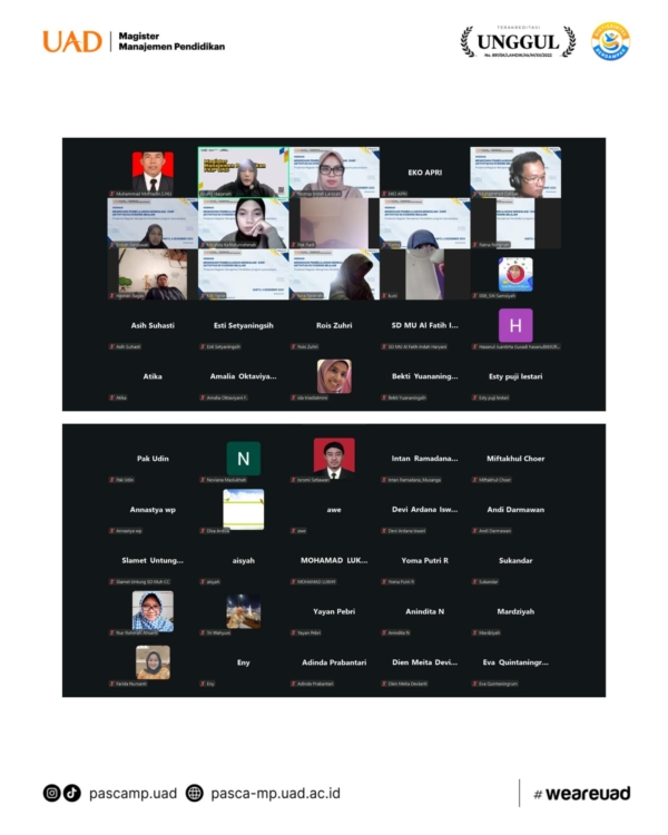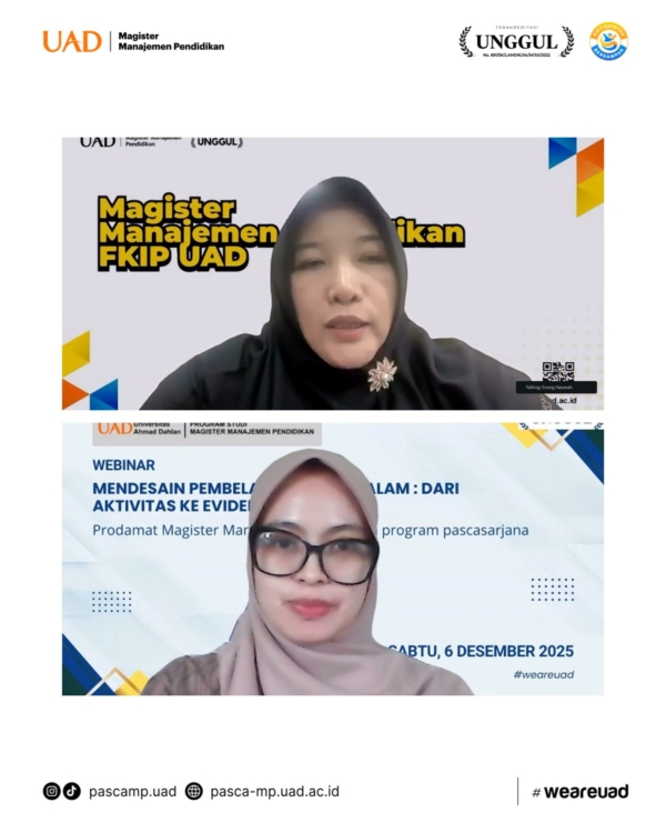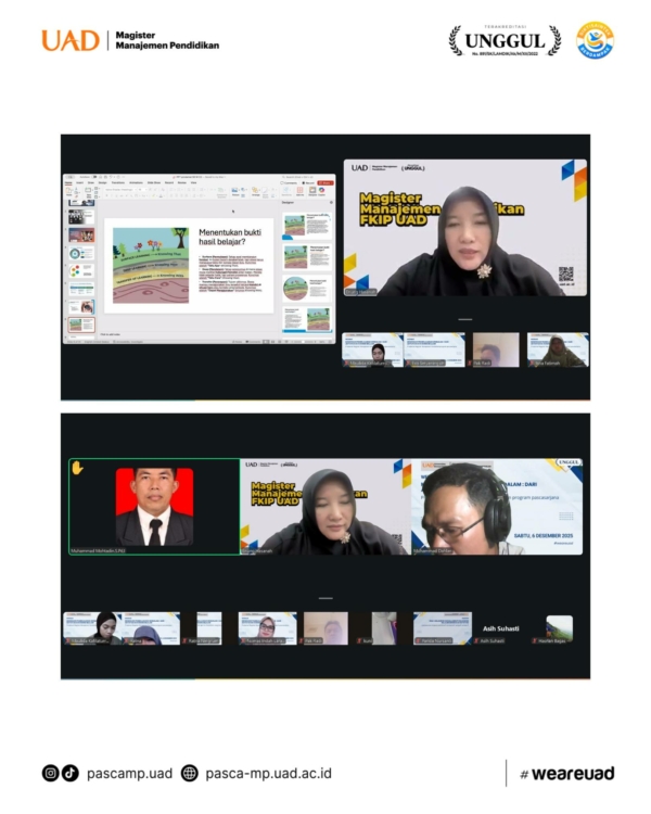 Yogyakarta — Magister Manajemen Pendidikan FKIP UAD (S2 MP UAD) kembali melaksanakan Program Pemberdayaan Umat (Prodamat) sebagai agenda wajib mahasiswa. Pada kesempatan ini, kegiatan dilaksanakan secara daring melalui Zoom Meeting pada Sabtu, 6 Desember 2025 dengan mengangkat tema “Merancang Pembelajaran Berkesadaran, Bermakna, dan Menggembirakan Berbasis Deep Learning di Era Digital.”