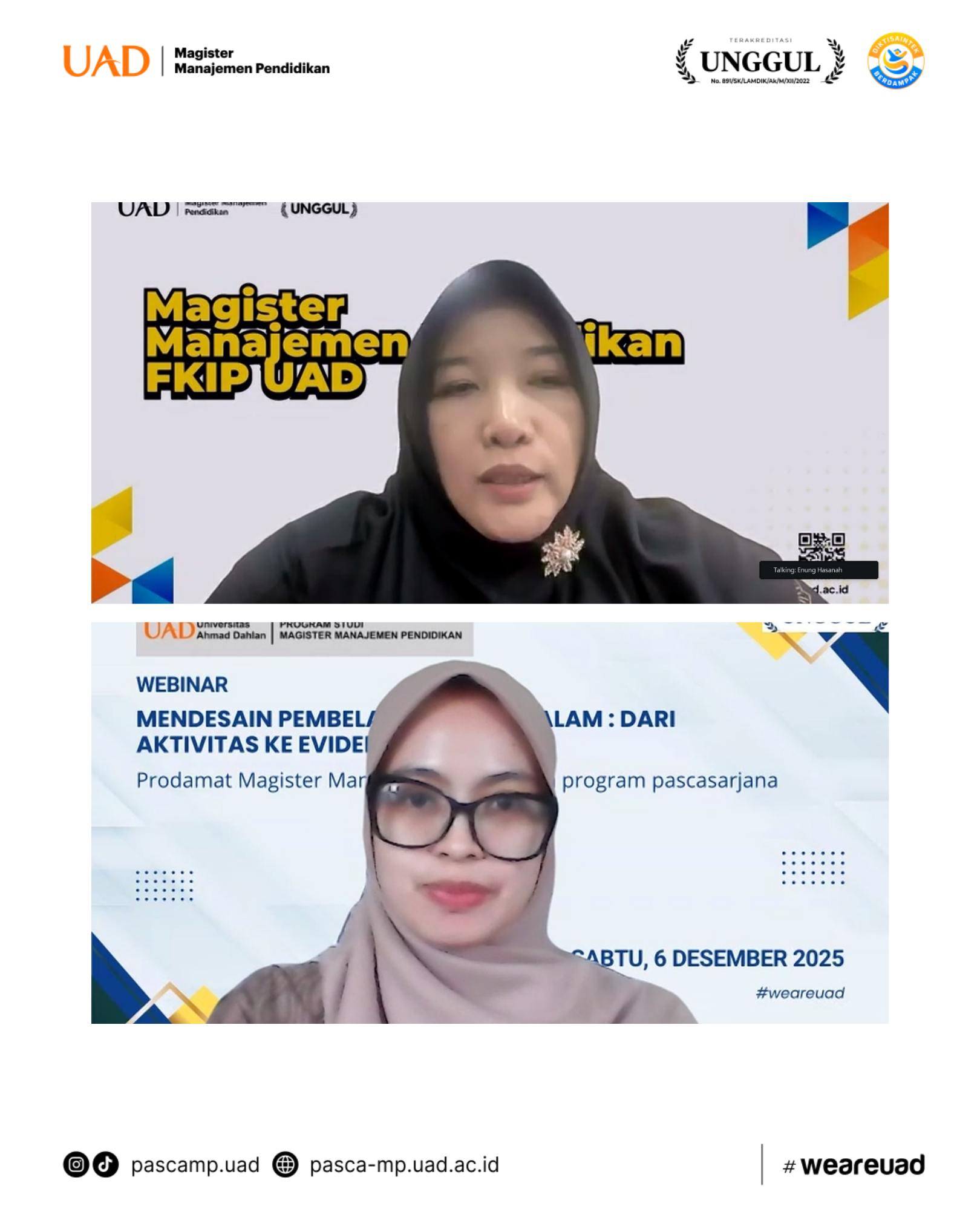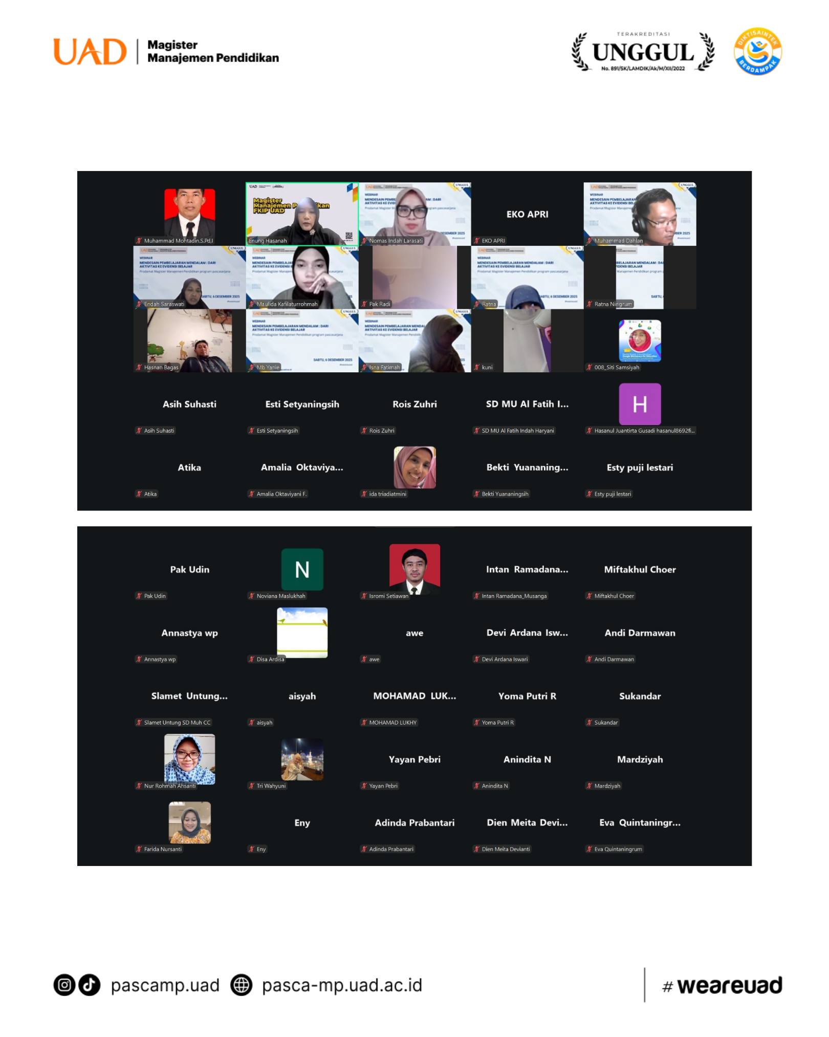 Yogyakarta — Magister Manajemen Pendidikan FKIP UAD (S2 MP UAD) kembali melaksanakan Program Pemberdayaan Umat (Prodamat) sebagai agenda wajib mahasiswa. Pada kesempatan ini, kegiatan dilaksanakan secara daring melalui Zoom Meeting pada Sabtu, 6 Desember 2025 dengan mengangkat tema “Merancang Pembelajaran Berkesadaran, Bermakna, dan Menggembirakan Berbasis Deep Learning di Era Digital.”